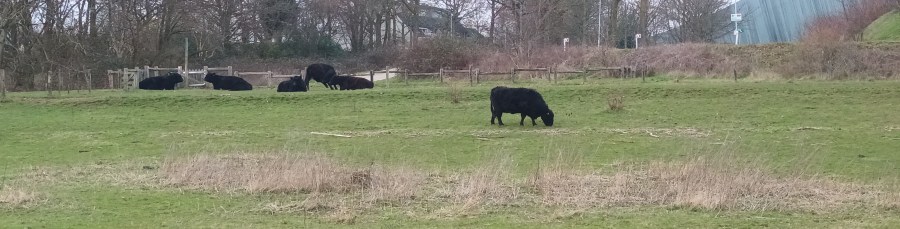 De weer-app zei regen, maar buiten scheen de zon. Ik ging aan de wandel, op zoek naar wat runderen. Iets met mijn verontschuldigingen aanbieden. Aan de overkant van de Maas, iets voorbij de brug, vond ik de dames. Dat clubje bij de uitgang zag er lichtelijk vervaarlijk uit. Ik ging voor de eenling bij het water. Pardon mevrouw, heeft u even tijd voor mij. In eerste instantie werd ik genegeerd. Begrijpelijk. Ik wil mijn excuses aanbieden voor mijn opmerking van gisteren, gooide ik eruit. Mevrouw keek mij verwonderd aan. Haar hele houding straalde de woorden wij runderen zijn niet zo snel op onze hoefjes getrapt uit. Missie volbracht. Ik wandelde verder en met nog een kilometer voor de boeg bleek de weer-app toch gelijk te hebben.