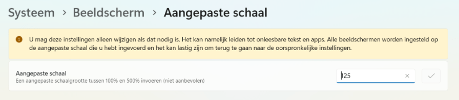 Maar het werkt. De schaal staat weer ingesteld op 125% en ik ben een blije gup. Wel eentje die de werking van diverse apps’ tart. Het moderne burgerlijk ongehoorzaam zijn. 😉