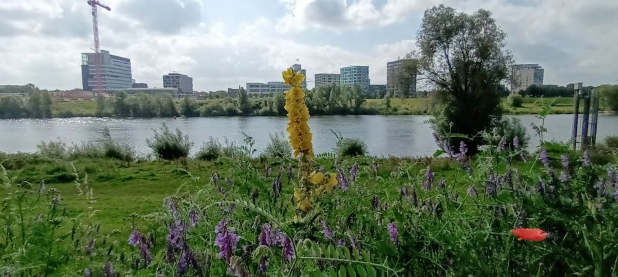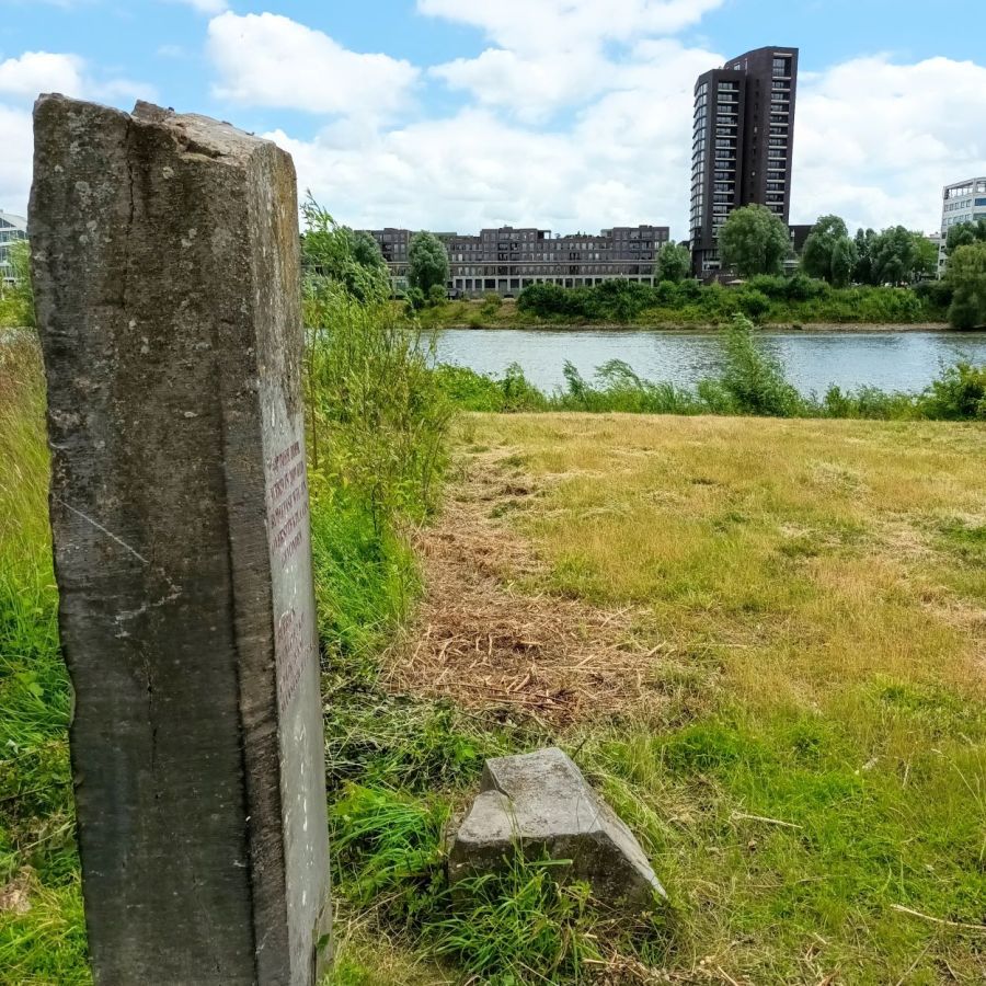 Het grootste deel van de tocht wandelde ik door de uiterwaarden. Op deze steen staat te lezen dat een aantal jaar geleden op deze plek een Romeinse oversteekplaats is gevonden. Levende geschiedenis.