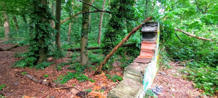 Dit keer liep ik via een iets andere route het dal in en zag deze muur van dakpannen.