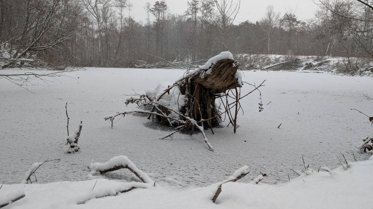 Ik zag weinig vogels, nog minder mensen maar de mensen die ik zag waren allemaal in bezit van een slee. Ik niet. Iets dat maar goed is want met mijn geluk was ik zo van een heuvel het water in geschoten. Ondertussen was het opgehouden met zachtjes sneeuwen en tegen de tijd dat ik thuis was zag ik eruit als een sneeuwpop.