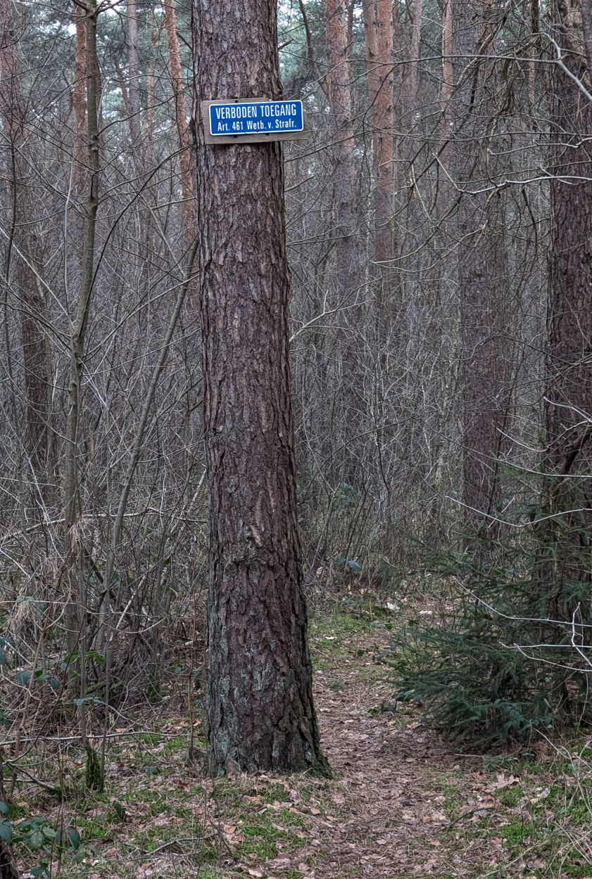 Startpunt van mijn wandeling waren de groene en witte route. Omdat de mensen voor mij niet bijster doorliepen, ging ik al snel van het pad af. Op sommige stukken van de Groote Heide durf ik dat al aan. Van het padje af kwam ik in de middel of nowhere een verboden toegang bord tegen. Aangezien ik op of rond de Duitse grens wandelde, en ik niet zeker weet of ik mij in het Duits uit een benarde situatie kan kletsen, draaide ik braaf om.