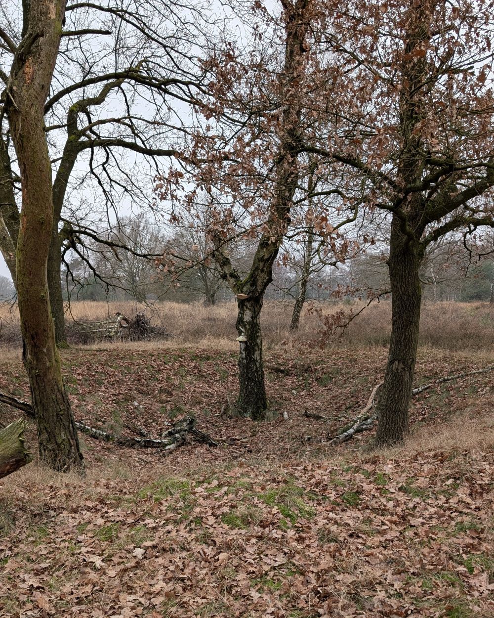 Zondag dacht ik dat ik blij zou worden van een bezoekje aan de Groote Heide. Maandag wist ik dat niet meer zo zeker. Gevoelsmatig had iemand de verwarming uitgedaan. Grumpy dreigde met ijs op de weg. Het was waterkoud en nog net niet mistig. Vanuit het idee, wellicht is het weer van de week nog beroerder trok ik mij van alle ellende niets aan.