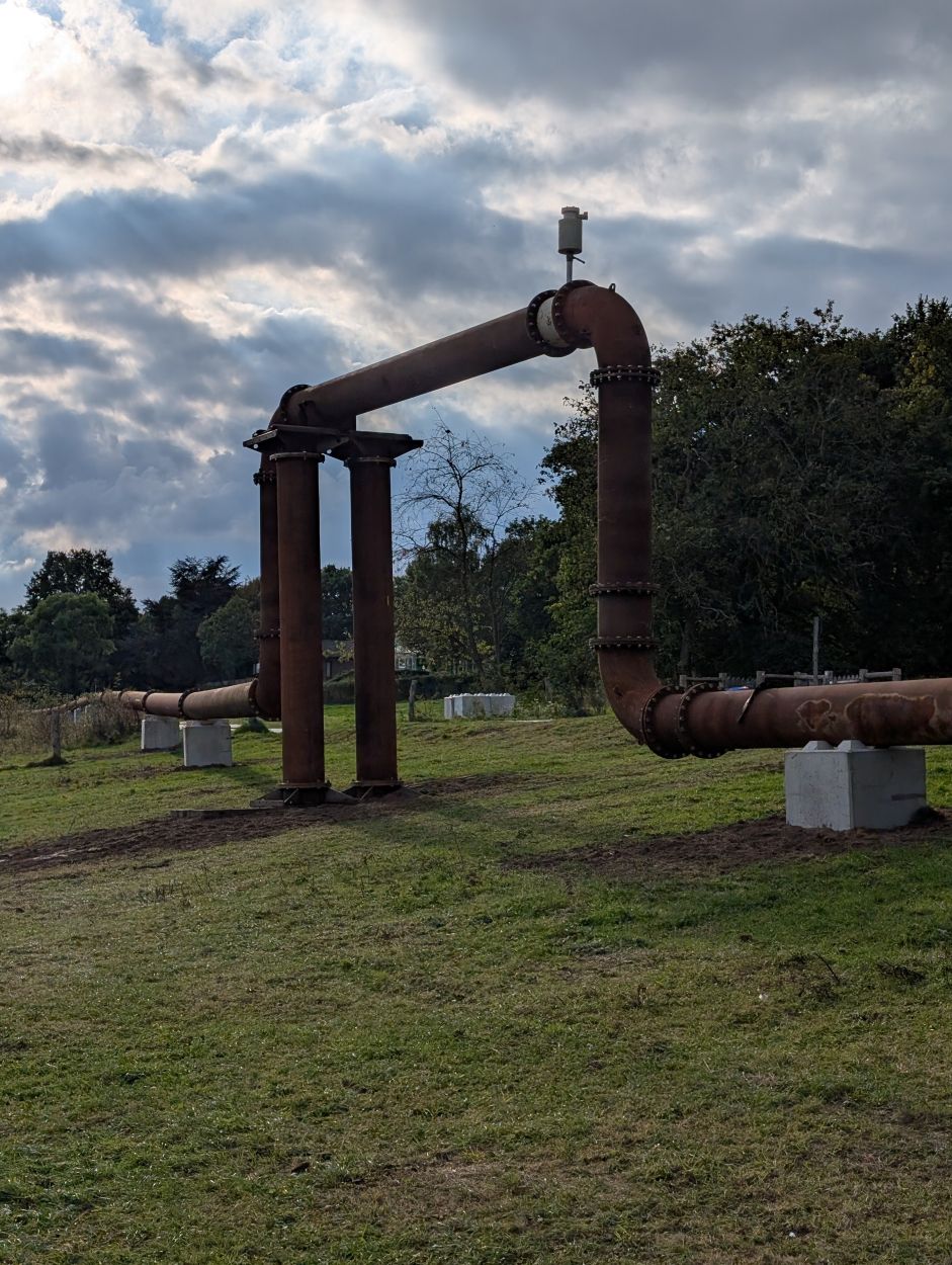 Weer thuis ging ik surfen. Het betreft een riooltransportleiding en het huidige exemplaar moet vervangen worden. Dit zijn voorbereidende werkzaamheden en uiteindelijk moet alles weer onder de grond. Als ik het goed begrepen heb. Of dat klopt ga ik pas in 2026 zien, want dan wordt pas met het echte werk gestart. Dus voorlopig mag ik al wandelend tegen de lelijke buizen aankijken. Het is niet anders.
