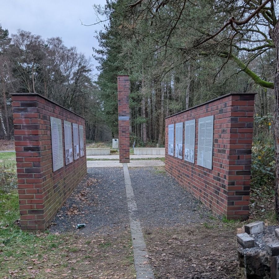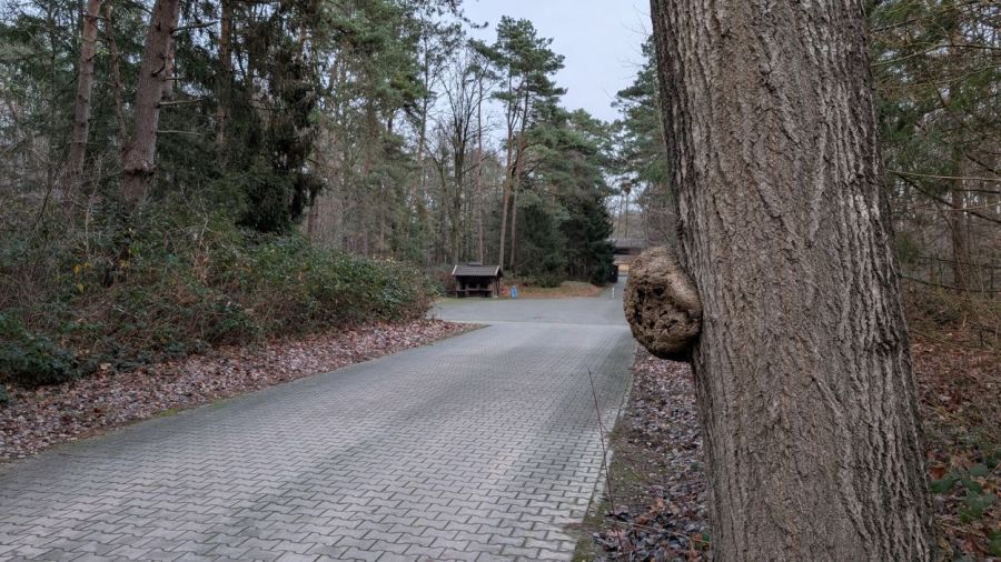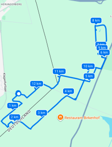 Leuk, interessant, maar niet het doel van de dag. Aangezien het monument niet rechts lag, besloot ik via het bos naar links te gaan. Onder begeleiding van Mevrouw Google wandelde ik door Duitsland. Over brede bospaden. Vanwege mijn doel liet ik alle veelbelovende paadjes links (en rechts) liggen. Ergens rond de vier kilometer dacht ik Volgens mij loop ik richting de Fliegerhorst. Ik veranderde van plan want waarom niet.